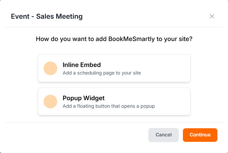 Select your preferred embed type, click on "Continue," and then use the "Copy Code" button to get the embed code instantly. Effortlessly integrate events into your site with just a few clicks.